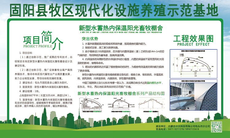 為促進本地區畜牧業產業高質量發展,2020年包頭市固陽縣農牧局主要領導及相關部門負責人通過實地調研、認真考察正式引進“新型陽光養殖棚舍”專利集成技術及產品,建設固陽縣牧區現代化設施養殖示范基地,項目于2020年12月15日順利通過驗收并正式投入運營,該項目將實現以下主要目標: