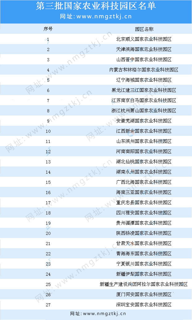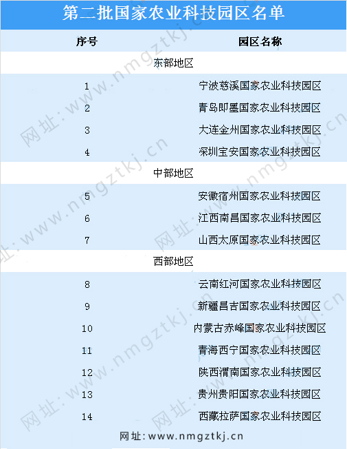 截止目前,我國已公布了8批國家農業科技園區名單,園區累計達到200多個,以下是1-8批國家農業科技園區名單匯總一覽: